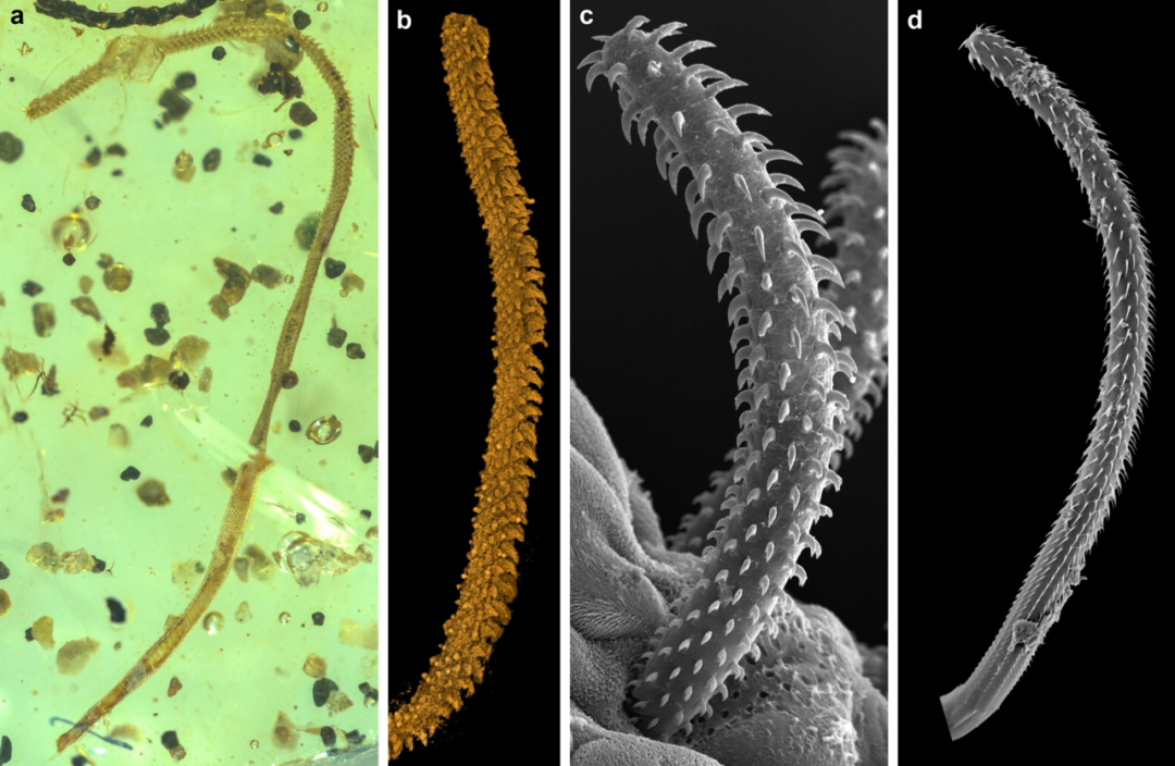 先前,来自中国科学院南京地质古生物研究所的科学家们在一亿年前的白垩纪缅甸克钦琥珀中发现了线虫[1]和绦虫[2]的化石。由此,给我们打开了一扇观察白垩纪寄生虫的窗口。近期,同一个研究团队又在更古老的侏罗纪发现了另一类寄生虫——棘头虫的化石,首次通过化石证据揭示了棘头动物门的起源,相关成果已于近期发表[3]。