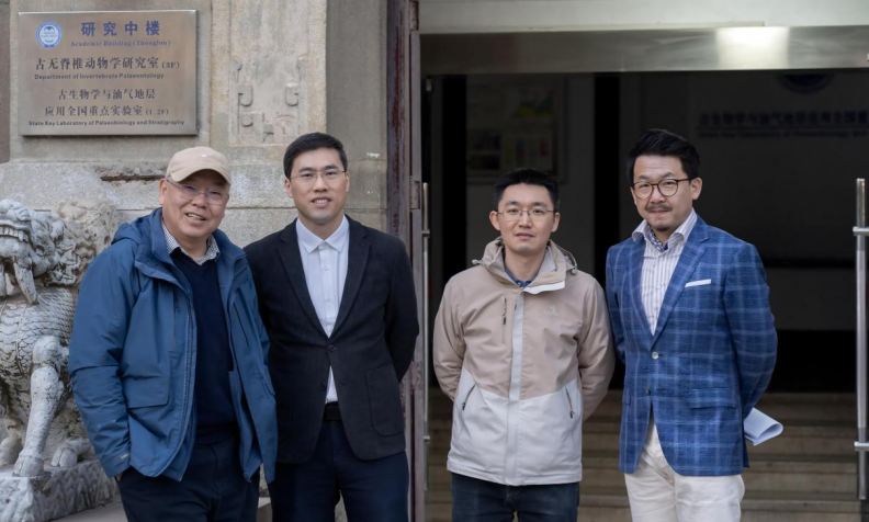 参与本次研究的部分科研人员 左起:朱茂炎、赵方臣、曾晗、刘琦(团队供图)