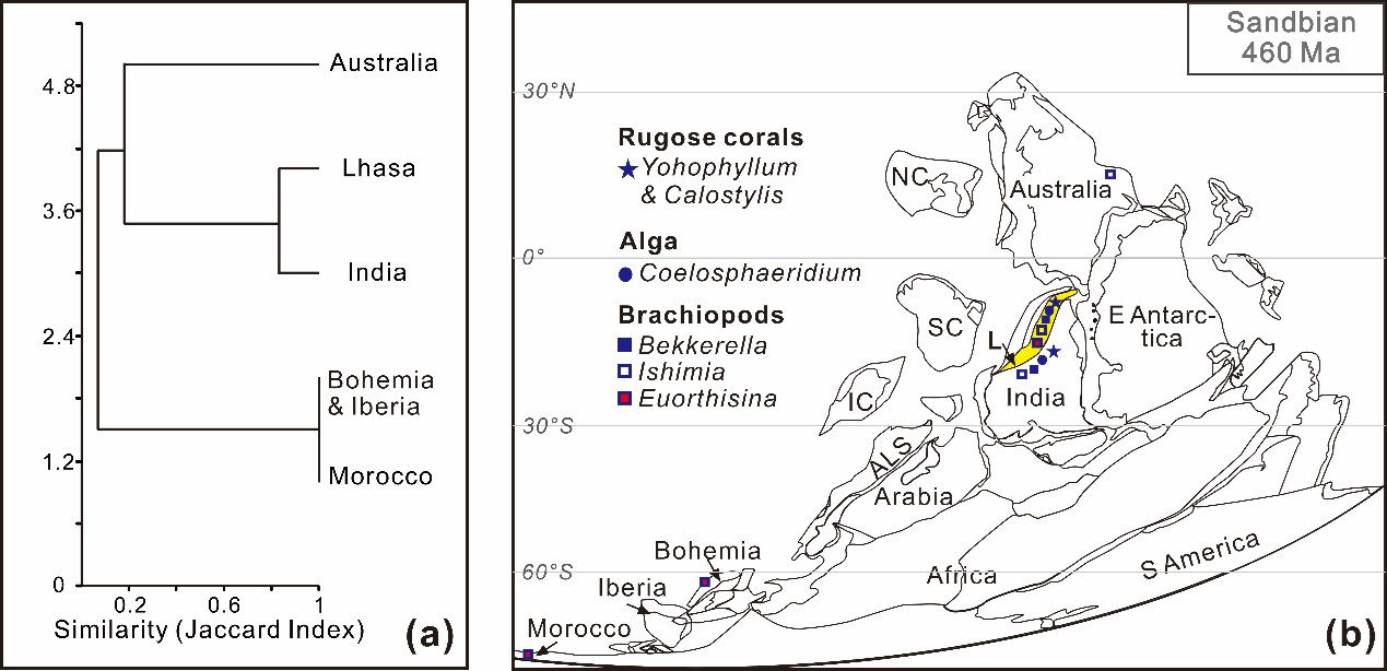 古生物地理与古地磁研究作为独立证据来源可用于追溯古地理位置,但长期因证据不充分难以提供明确结论。目前可靠的古地理复原表明,志留纪之前东冈瓦纳西缘呈近南北走向分布,覆盖广泛古纬度区间。如果对具有明显纬度梯度分异的生物群进行生物地理分析,将成为限定拉萨地体在冈瓦纳的相对位置的关键依据。