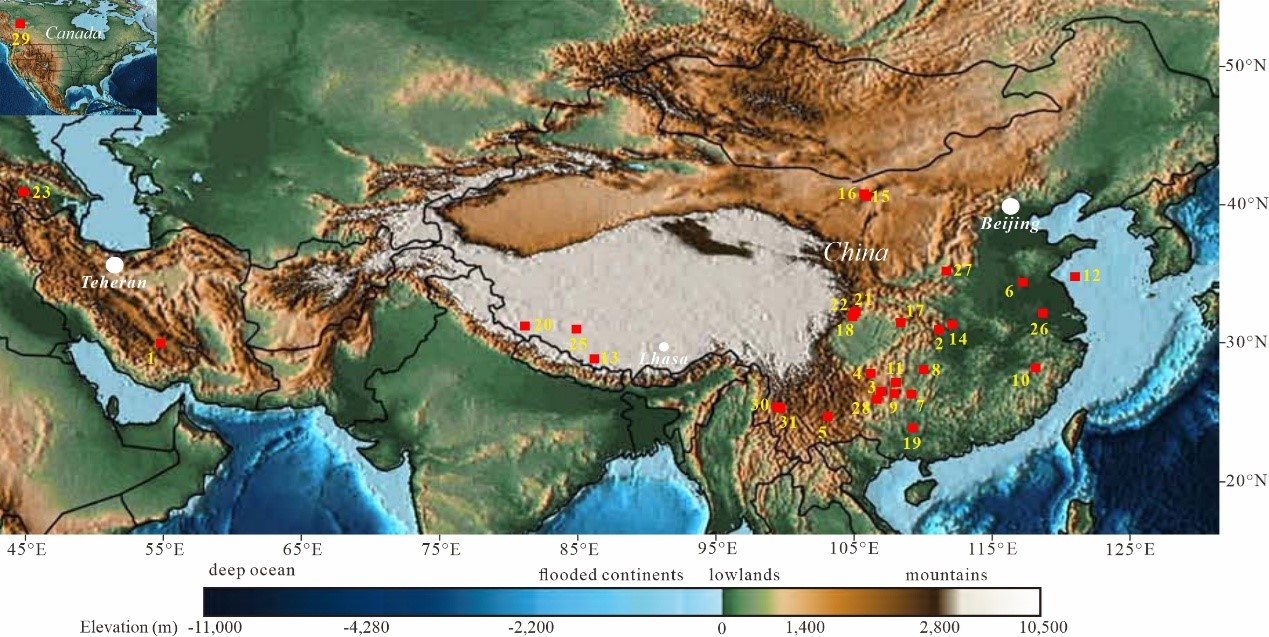 图1 中国和邻区地形图展示专辑所涵盖的研究地点/区域