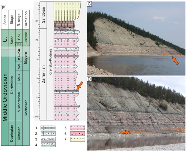 长期以来,科学界普遍认为中奥陶世是礁体演化的关键转折期,即造礁生物如层孔海绵(stromatoporoids)、珊瑚和苔藓虫开始逐渐取代微生物,成为新的礁体建造者。然而,这一转变的时间、过程,尤其是在不同大陆间的差异一直存在争议。莫耶罗河(Moyero)沿岸剖面作为西伯利亚台地出露最完整的奥陶系地层之一,为揭示这一问题提供了重要窗口。遗憾的是,自上世纪70年代末该剖面生物礁首次报道以来,相关研究再未取得实质性进展。