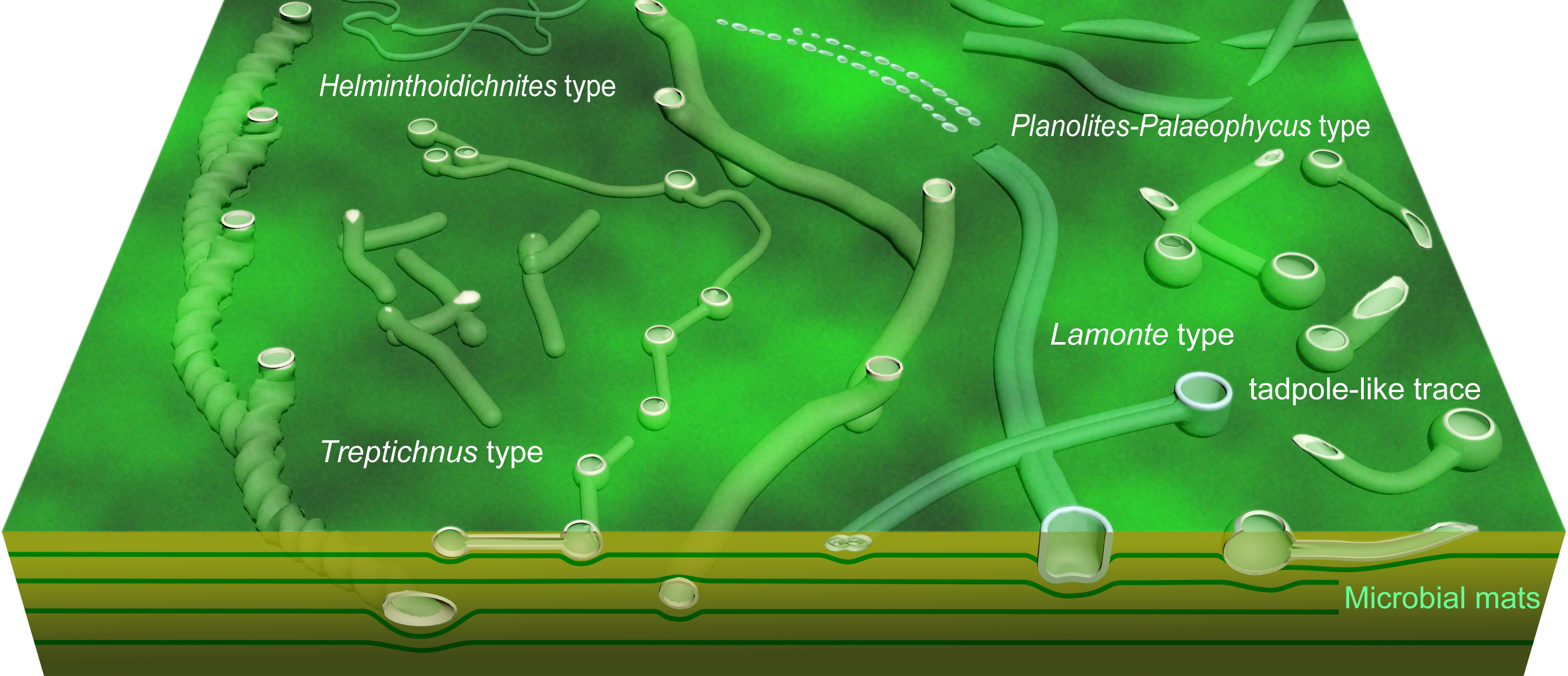 南京古生物所研究员陈哲与博士生刘雅榕,对湖北宜昌“石板滩生物群”(距今约5.5~5.43亿年)的遗迹化石进行了系统研究,发现了锯形迹(Treptichnus)属中的多个遗迹化石种,并建立一个新遗迹化石种Treptichnus streptosus.,结合该生物群中已发现的三维遗迹化石多山迹(Lamonte)及蝌蚪状遗迹,深入讨论了动物垂向探索行为出现的演化与生态学意义,并揭示了动物复杂行为在寒武纪大爆发前夕就已出现。