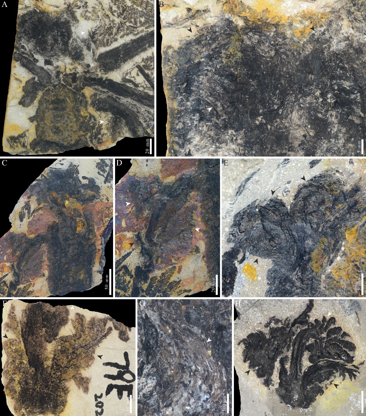 图3 一系列精美标本展示辉木科植物托叶保护拳卷幼叶