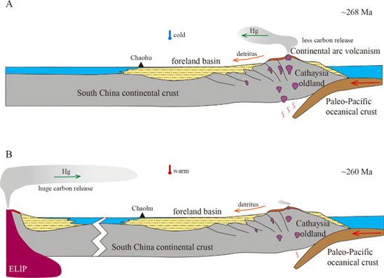火山活动是驱动地球气候系统演变的关键因素,但其具体气候效应长期以来存在争议。瓜德鲁普世—乐平世之交(约2.6亿年前)正值晚古生代大冰期消亡的关键时期,同时发生了峨眉山大火成岩省和华南大陆弧的强烈火山活动,为研究不同类型火山活动的气候效应提供了绝佳的“天然实验室”。