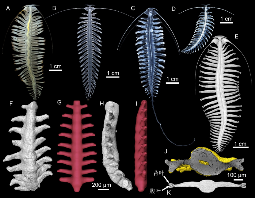 长腿张家沟虫与现生环节动物浮蚕的对比