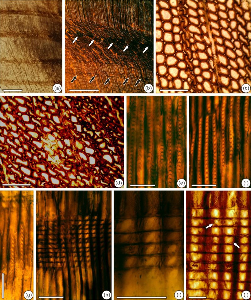 近日,《中国科学-地球科学》(英文版)(Science China-Earth Sciences)发表了由南京古生物所王永栋研究员、沈阳师范大学田宁博士及南京古生物所研究生谢奥威和李丽琴等共同完成的有关辽西建昌地区侏罗纪木化石新发现的研究论文。该论文通过系统解剖学研究,首次报道了辽西建昌玲珑塔地区髫髻山组发现的解剖构造保存完好的两个木化石类群,即裴德异木(Xenoxylon peidense Zheng et Zhang)和建昌原始落羽杉型木(新种)(Protaxodioxylon jianchangense sp. nov. Tian et Wang),并为深入探讨辽西侏罗纪中晚期古气候特征及其变化提供了十分难得的化石证据。这是王永栋领导的中生代植物与环境创新交叉团队在我国辽西中生代木化石研究领域所取得的一项新成果。