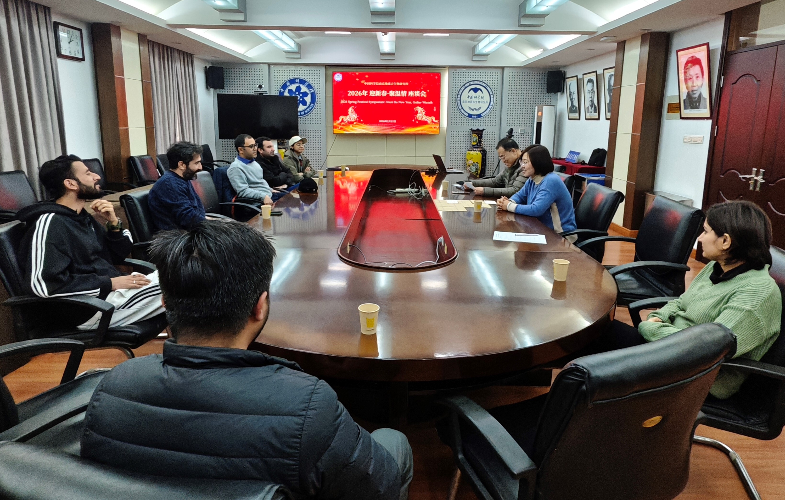 2月13日下午,在新春佳节即将来临之际,中国科学院南京地质古生物研究所举办“迎新春·聚温情”座谈会。南京古生物所所长王军、相关职能部门负责人以及春节期间留宁的外籍研究生、特别研究助理和博士后欢聚一堂,共迎癸卯新春,共话科研情谊,体会 “南古大家庭” 的暖心关怀。2月13日下午,在新春佳节即将来临之际,中国科学院南京地质古生物研究所举办“迎新春·聚温情”座谈会。南京古生物所所长王军、相关职能部门负责人以及春节期间留宁的外籍研究生、特别研究助理和博士后欢聚一堂,共迎癸卯新春,共话科研情谊,体会 “南古大家庭” 的暖心关怀。座谈会上,王军与外籍科研人员亲切交流,悉心询问了大家的学习、工作与生活近况,详细了解大家的假期安排与实际需求。他还向外籍人员介绍了中国春节的传统习俗与文化内涵,带领大家沉浸式感受新春佳节承载的美好愿景和中华传统文化的独特魅力。王军代表研究所向大家致以最诚挚的新春祝福,勉励大家在新的一年里坚守科研初心、以坚韧不拔的毅力和勇于创新的精神,在地质古生物学研究的道路上勇毅前行、勇攀高峰。自由发言环节中气氛热烈而温馨,参会外籍科研人员踊跃发言,真诚感谢研究所的悉心关怀和周到安排。大家表示,将妥善规划春节期间的科研、学习与生活,合理利用假期充实自我,不断提升综合素质与科研能力,新的一年将以更饱满的热情、更务实的作风投入到工作与学习中,努力为研究所的科研事业发展贡献力量。会后,人事教育处为留宁外籍人员送上精心准备的祝福卡片和新春慰问品,将研究所的温暖与关怀传递到每个人手中。这份跨越文化的真情厚意,让春节留宁的外籍科研人员在异乡感受到了别样的新春温情,进一步凝聚起中外科研人员携手奋进、共促学科发展的美好合力,也让这个新春佳节更显温馨、祥和而富有温度。