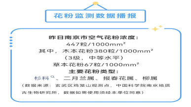 自2026年3月13日起,中国科学院南京地质古生物研究所联合南京市气象局、市卫生健康委员会,在“南京气象”微信公众号每日推送发布空气花粉气象监测数据。